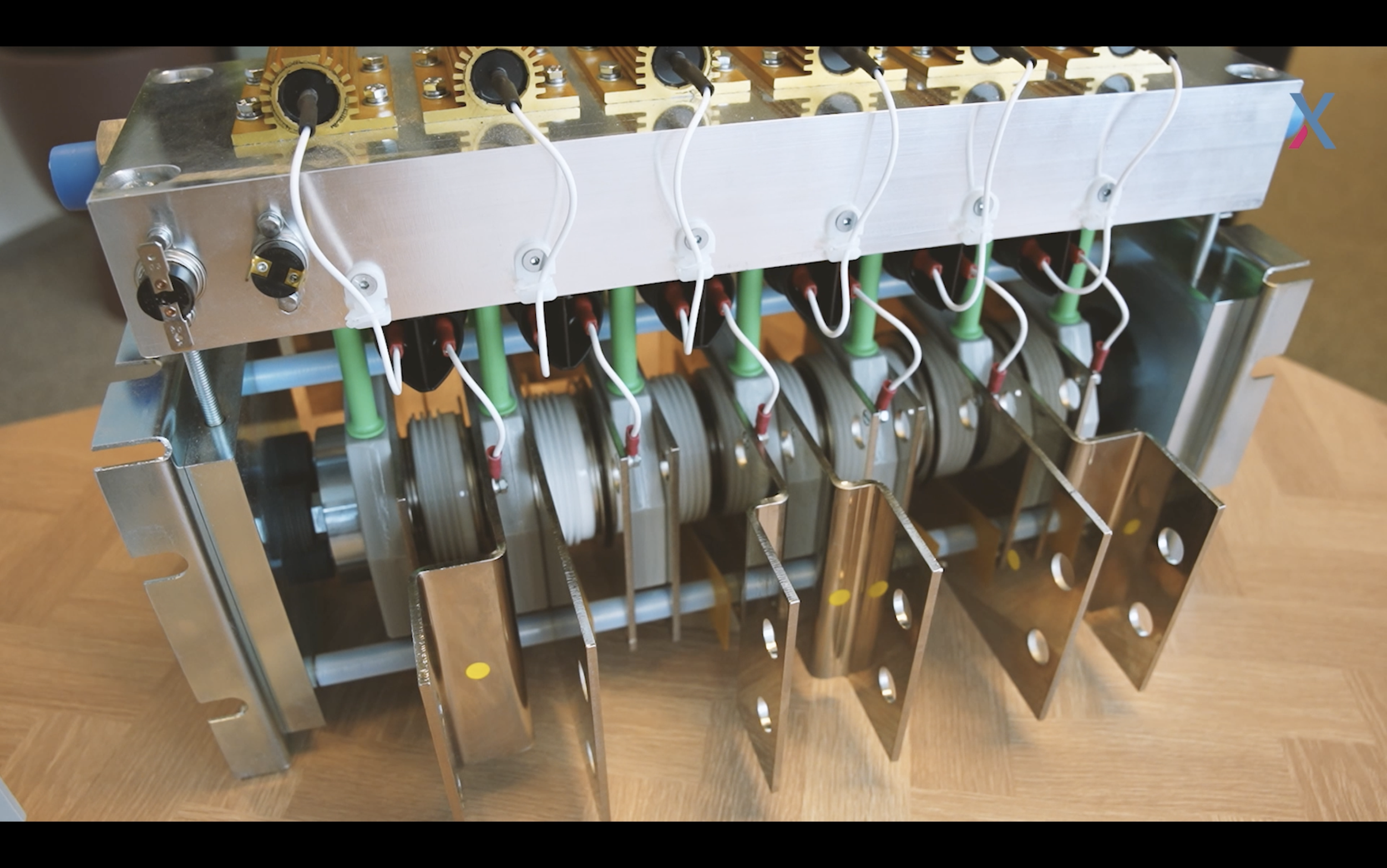 One of the key solutions in this first episode is the liquid-cooled rectifier. This super-compact, 3-phase, isolated, water-cooled rectifier is positioned between the AC (for example a diesel generator set) and the DC network in a system. It features various components like sensors and snubber circuits, with connections for a water and glycol medium to dissipate heat. Our liquid cooled rectifier has a 3 x 690 V AC input with a 3500 V DC output.